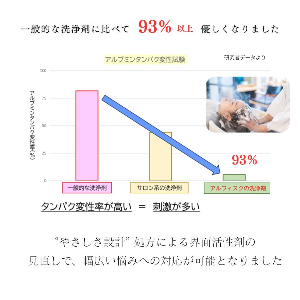 独自のブレンド技術で、天然由来の低刺激洗浄成分が髪・頭皮・お肌の【バリア層】を守りながら、軽やかな洗い心地と保湿。そして髪の修復を同時に叶える新しいスキャルプシャンプーが誕生しました。 アルフィスクヘアケアは低刺激ながら豊かでクリーミーな泡立ちとダメージ毛に対応する風合いを実現。