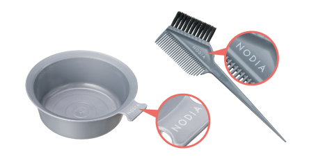 アレルギーリスクを避けるため、道具はNODIA専用にし、ジアミンを含むヘアカラーとは分けることが大切です。
